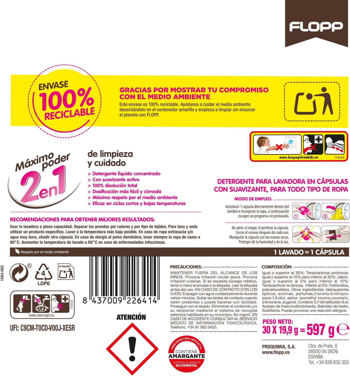 2 em 1 Detergente e Amaciador em DUO cápsulas 30D FLOPP |Ecológico