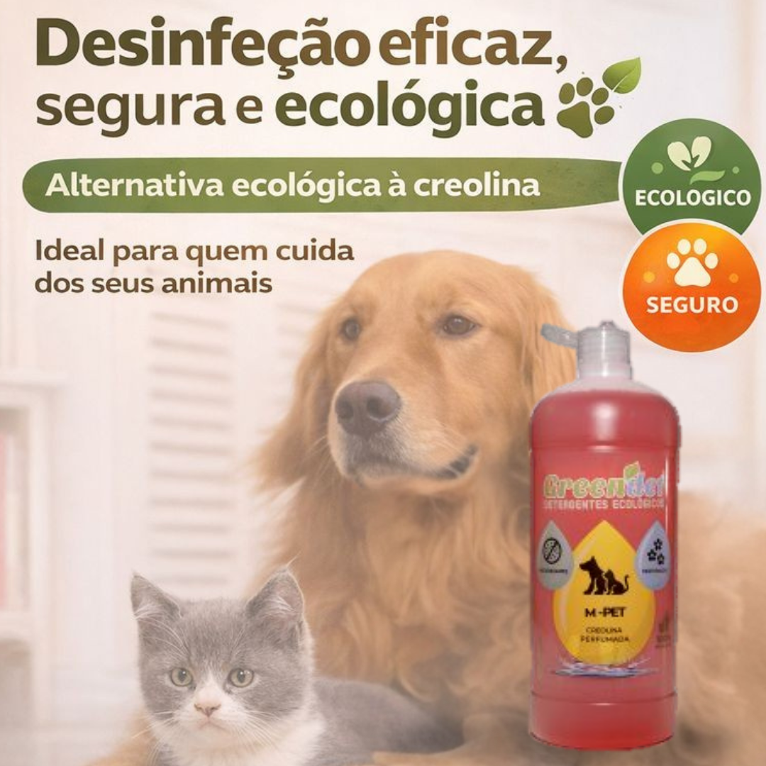 O M-Pet é uma alternativa ecológica à creolina que contém um agradável perfume deixando os espaços habitados pelos nossos animais, mais agradáveis.