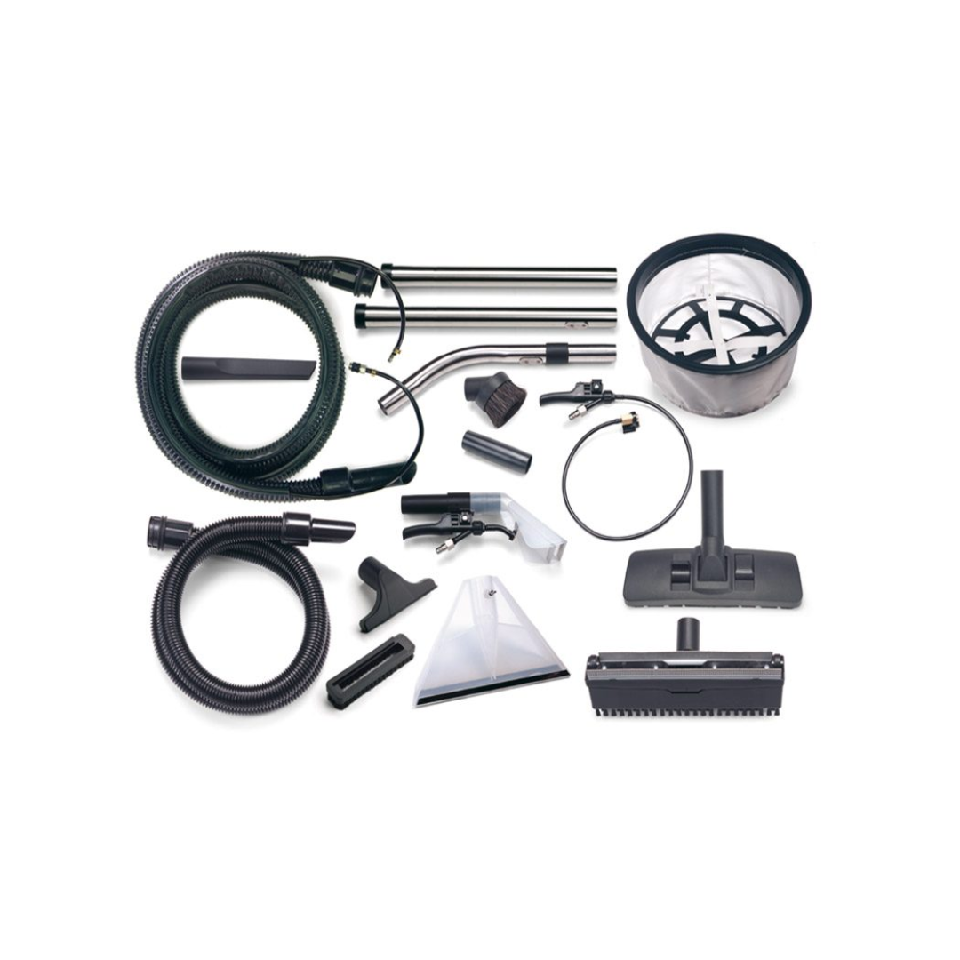 Desenvolvido para ajudar em todas as tarefas de limpeza. Vem equipado com todos os acessórios para aspirar líquidos e sólidos e para lavar e secar alcatifas, carpetes, estofos e pavimentos duros. Motor: Twinflo Alimentação: 220V AC 50/60 Hz; Potência do motor de aspiração: 1060W; Depressão máxima: 2400 mm/H2O; Caudal de ar aspirador: 49 l/s; Tubos em aço inox; Bocais adicionais para operação de injeção / extração; Filtro principal: Tritex Sistema de filtragem HEPA com sacos e filtro; Capacidade do depósito para pó: 15 l; Capacidade do depósito para água: 9 l; Capacidade do depósito para extração:6 l; Raio de ação: 26,4 m; Peso: 11 Kg Dimensões (comprimento, largura, altura): 360 x 370 x 510mm Kit de acessórios A26A incluído;