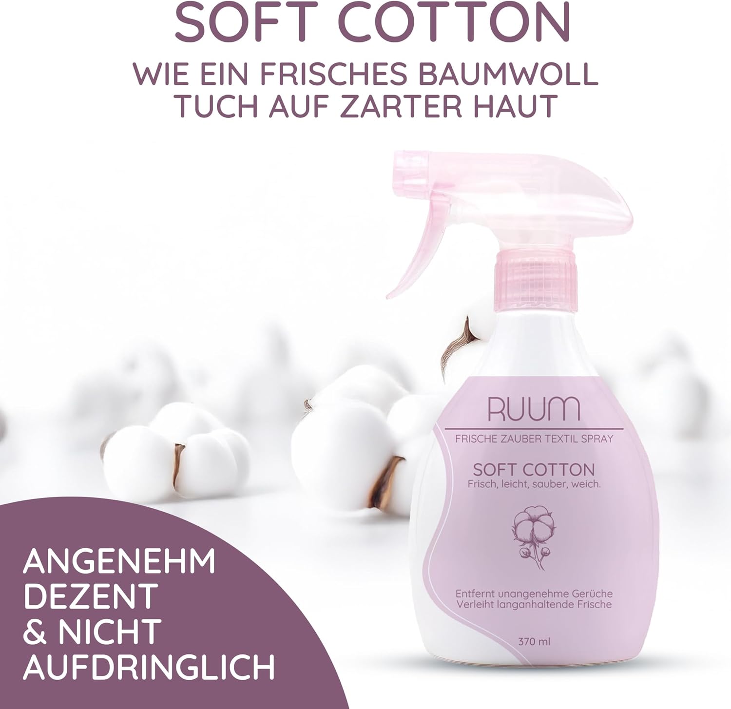 Frescura instantânea que permanece: o aromatizador de tecidos RUUM confere aos tecidos a sensação de roupa acabada de lavar com apenas algumas pulverizações.
