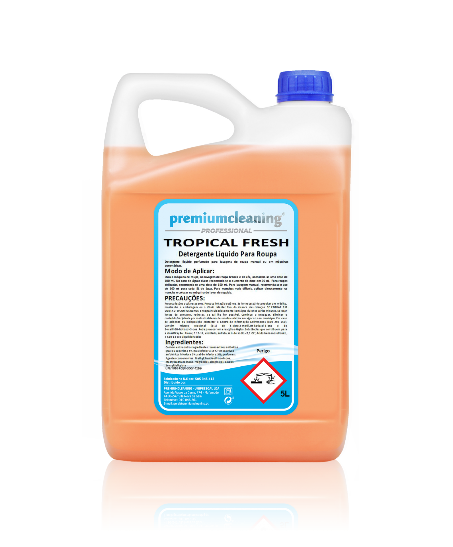 Detergente líquido, perfumado, destinado a lavagem de roupa manual ou em máquinas automáticas domésticas e industriais.