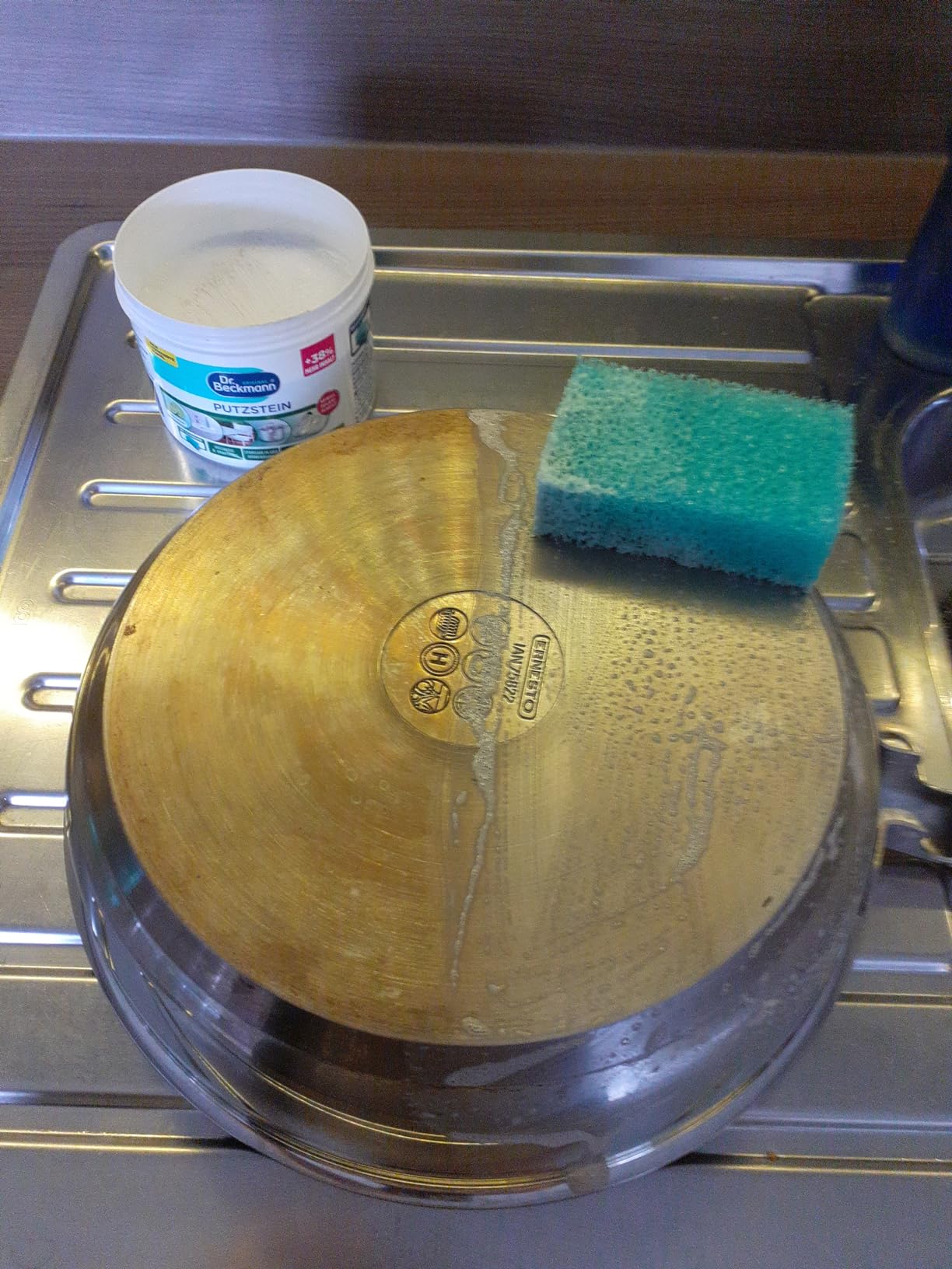 1. Humedeça a parte abrasiva da esponja e esfregue a quantidade necessáriade produto