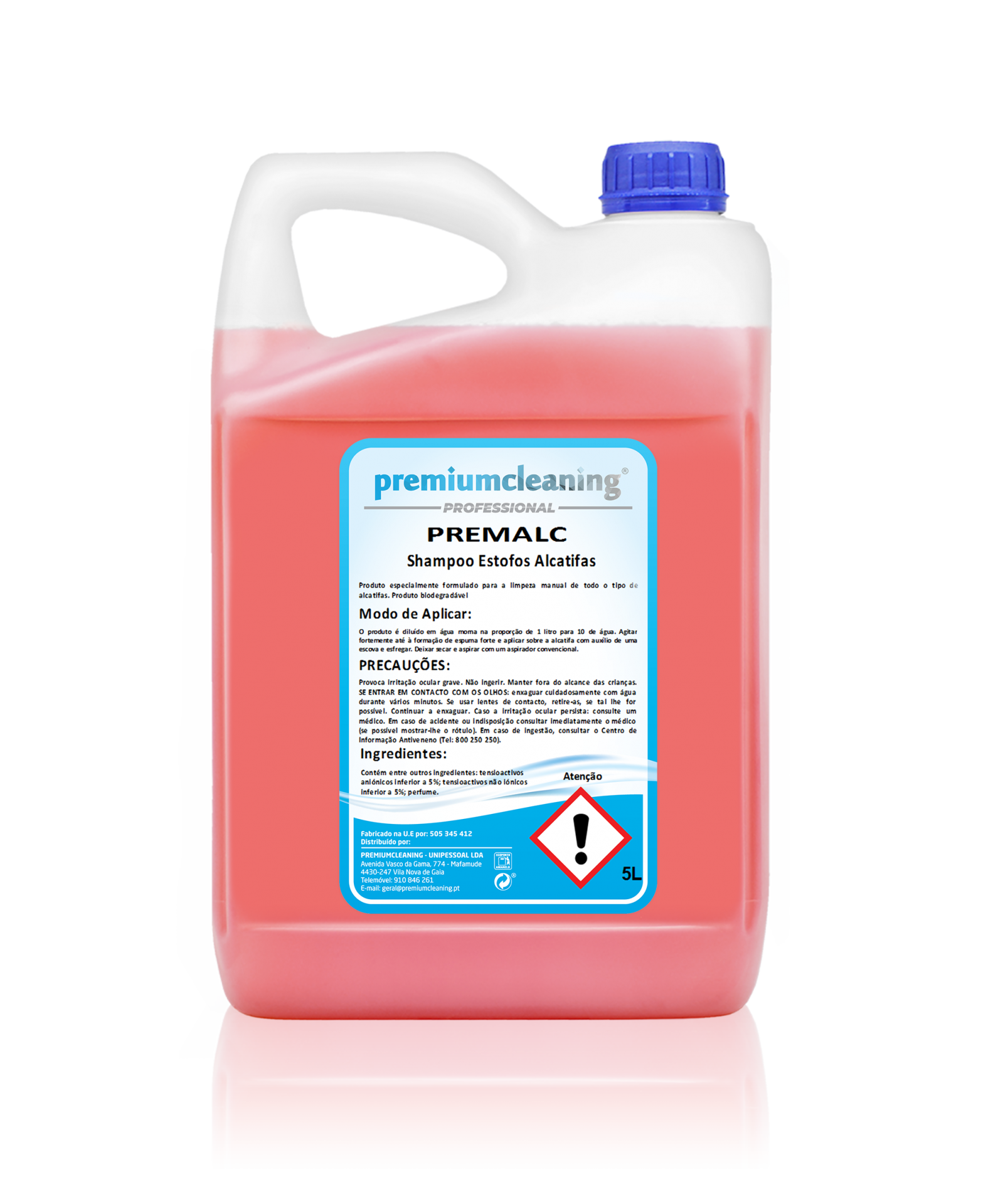 MODO DE EMPREGO O produto é diluído em água morna na proporção de 1 litro de produto para 10 litros de água. Aplicar o produto sobre a alcatifa com auxílio de uma escova e esfregar. Sem deixar secar, limpar com um pano limpo e húmido para remover o excesso de produto. Caso possua, poderá aspirar a espuma com um aspirador apropriado para líquidos.
