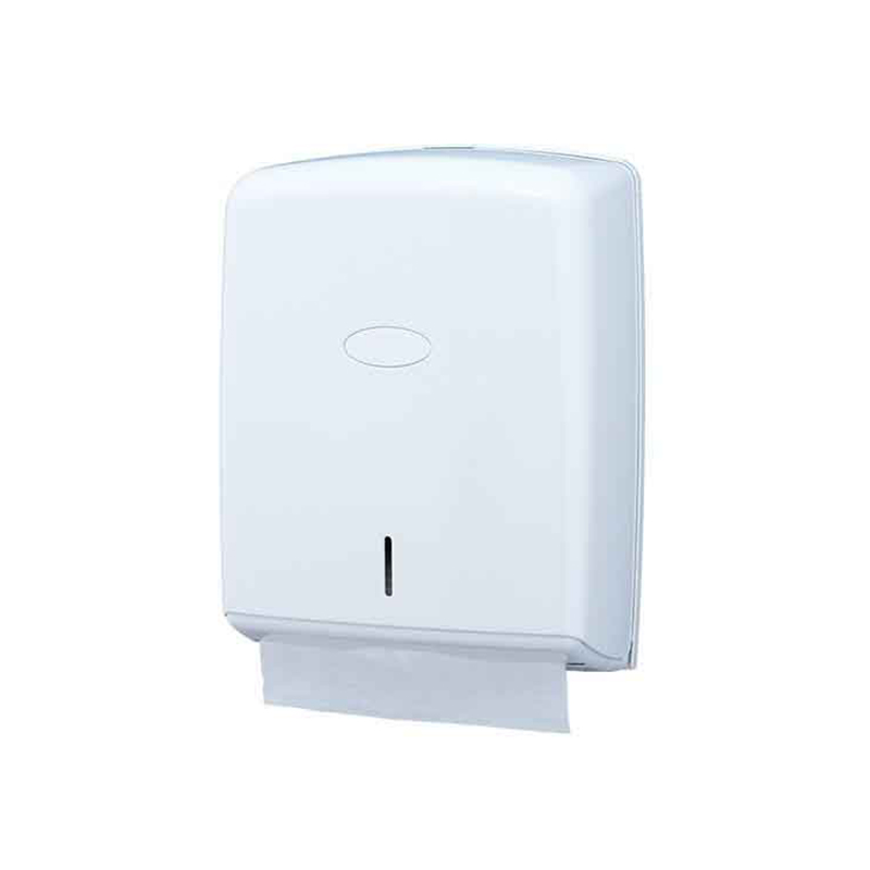 Dispensador de toalhas de papel, fabricado em plastico ABS, com visor de nível de papel e fechadura.