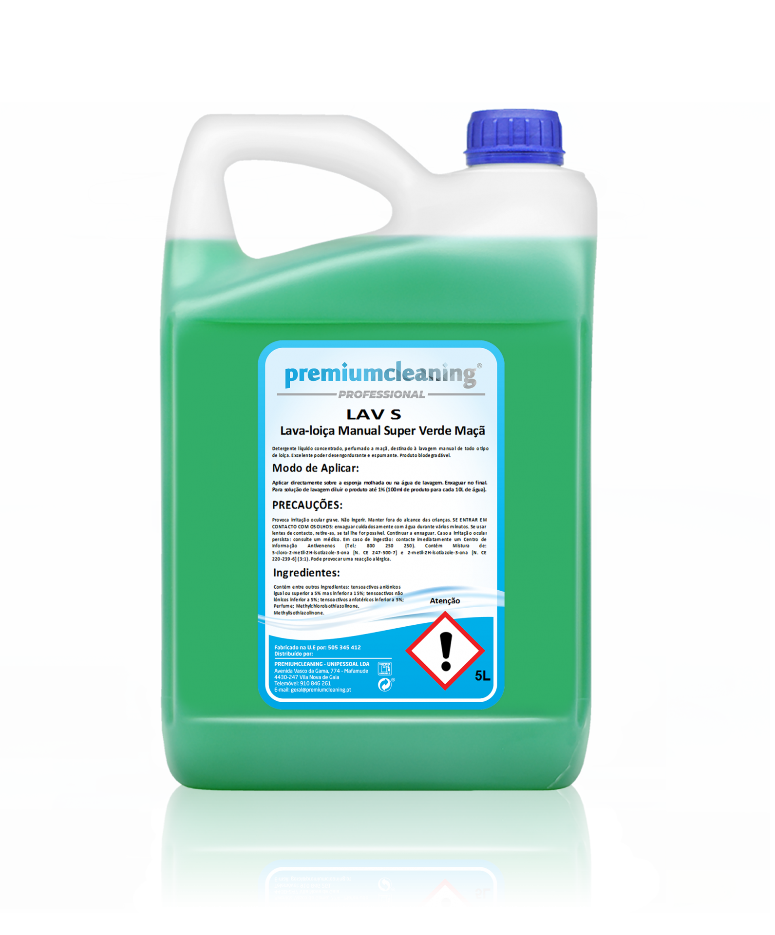 LAV S MAÇÃ - Detergente líquido concentrado 5L , com aroma a maçã, destinado à lavagem manual de todos os tipos de loiça. Excelente poder desengordurante. Produto biodegradável.